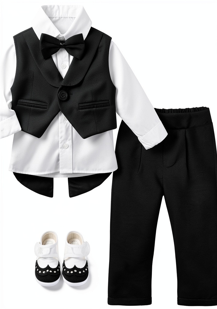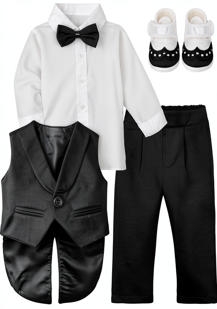 The set comes in sizes like 3-6 months, with options in colors such as black and burgundy to suit different preferences.